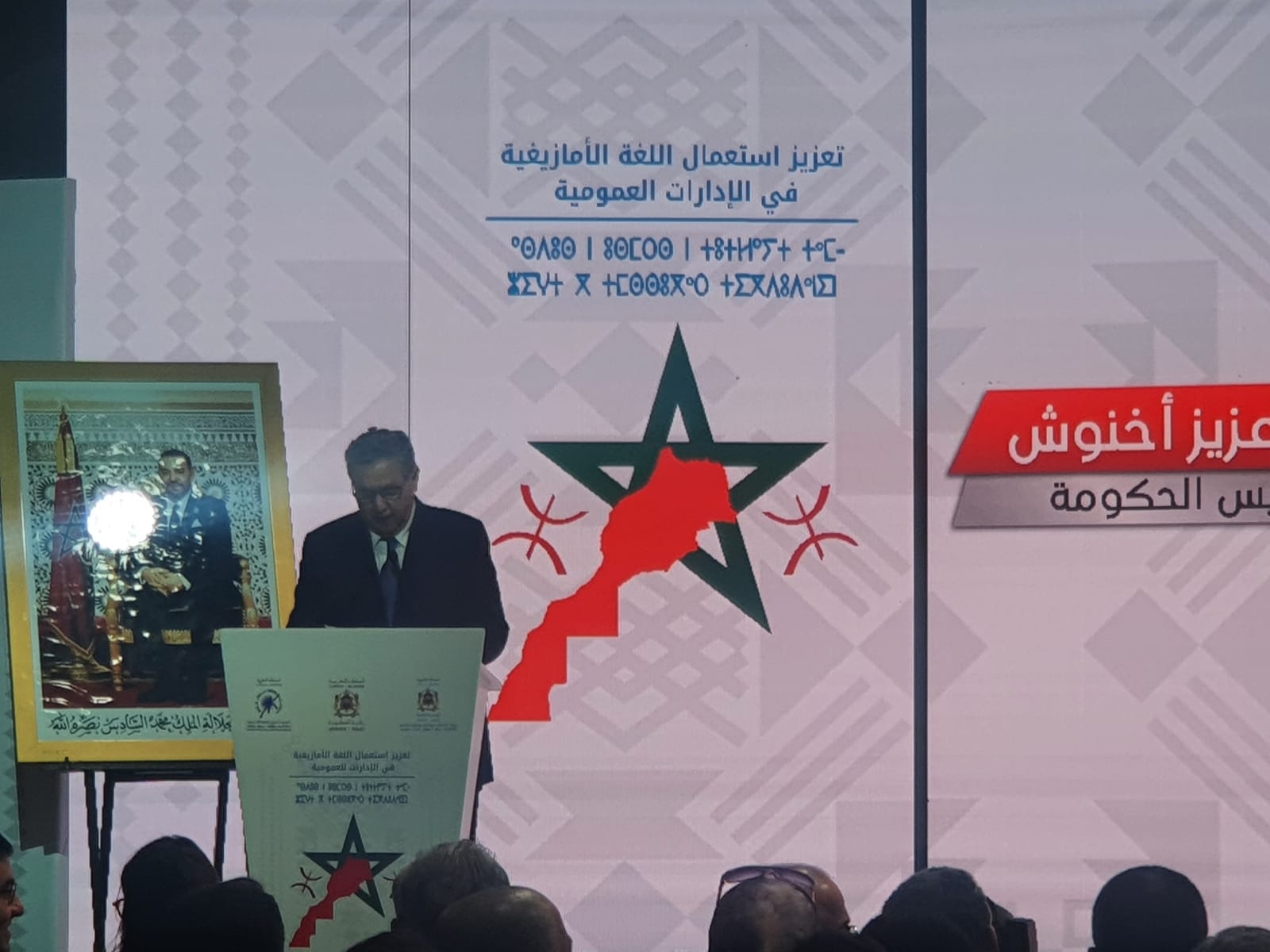 Dans le cadre de la promotion de la langue amazighe, le ministère de la Transition Numérique et de la Réforme de l’Administration a organisé, ce mardi 10 janvier 2023 à Khémisset, la cérémonie officielle de lancement des procédures du schéma intégré d’activation du caractère officiel de l’Amazigh dans les administrations publiques sous la présidence de Monsieur le Chef du Gouvernement, en présence de plusieurs Ministres et en partenariat avec l’Institut Royal de la Culture amazighe à l’issue des hautes orientations royales.